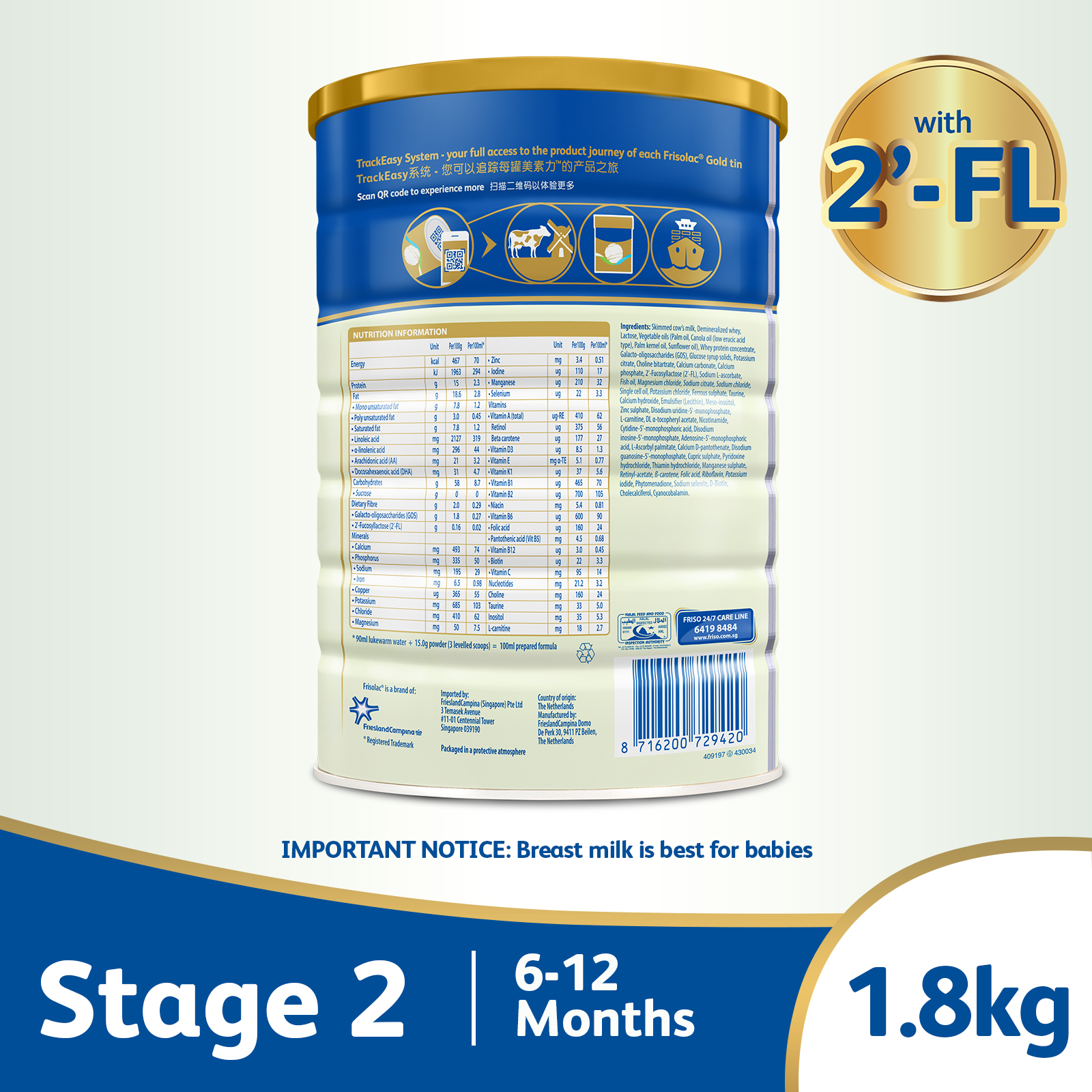 Introducing Frisolac Gold Stage 2, an infant milk powder formula for 6-12 months old’s. Frisolac Gold Stage 2 contains important nutrients to support overall growth and development. Frisolac uses LockNutriTM which is an advanced process technology that locks in milk protein structure in its natural form. Our infant formula is 100% produced and packed in the Netherlands. Frisolac is a global brand with presence in more than 20 countries worldwide.